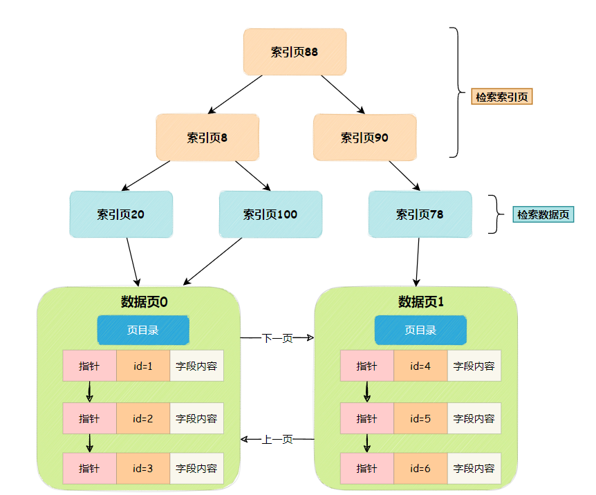 但是随着数据页多起来,它们怎么知道上一页与下一页在那呢?