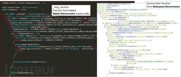图1 Babuk和Nokoyawa的服务查杀代码比较