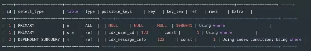 重写为 JOIN 之后,子查询的选择模式从 DEPENDENT SUBQUERY 变成 DERIVED,执行速度大大加快,亿华云计算从7秒降低到2毫秒