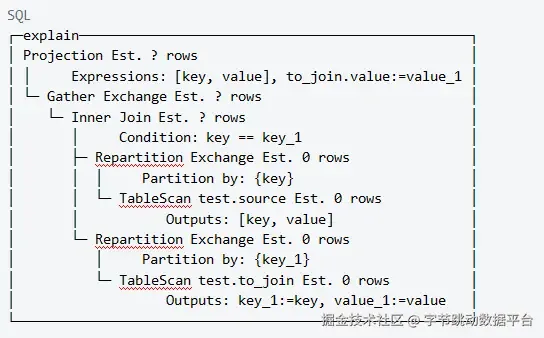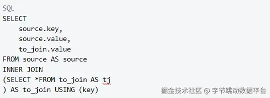 在很多引擎中,带有非等值条件的 join 需要通过多个算子来组合执行(inner join + filter + group-by),而在 ByteHouse 中,支持非等值 join 之后可以直接在 join 算子中完成非等值条件的执行。