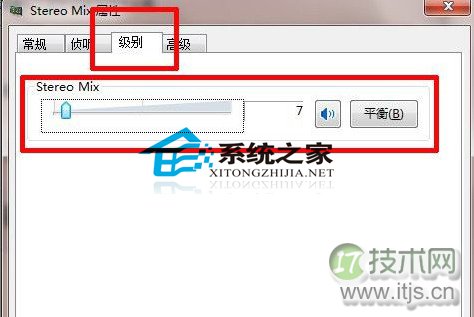 6、双击stereo mix属性,进入菜单后选择“级别”并调整好合适的混合音的音量。设置完毕后点击“确定”。