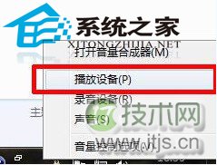 7、回到桌面,在小喇叭出单击右键,选择“播放设备”。免费源码下载