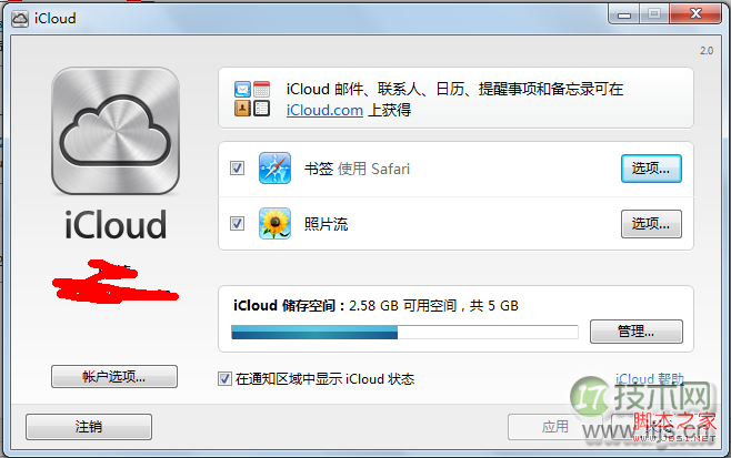 Windows 7下需要安装一个iClond控制面板。签同虽然一直下一步就哦了。制面如图
