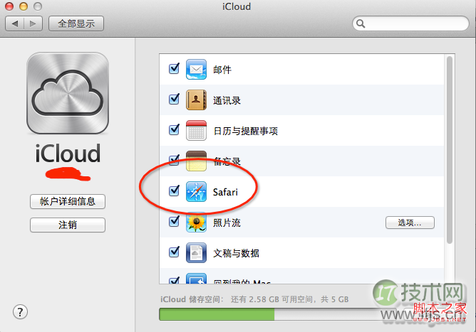 Mac OSX下的Safari目前版本是6,打开系统偏好设置,制面选择iCloud项