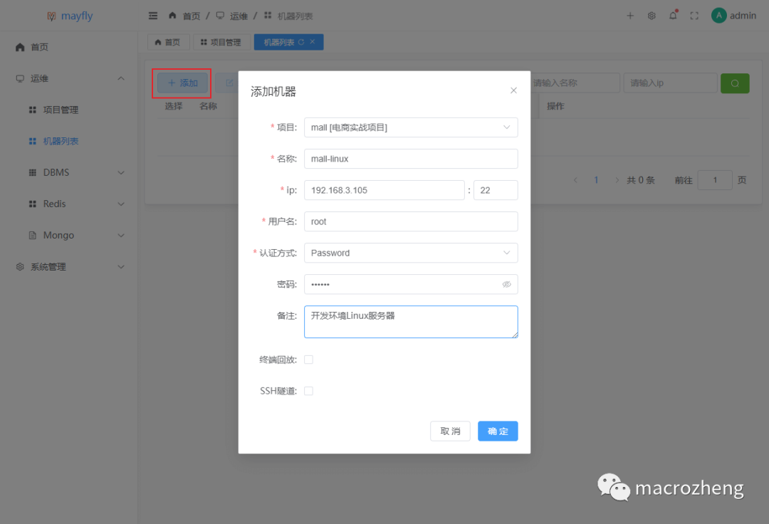 max-idle-conns: 51.2.3.4.5.6.7. 创建mayfly-go数据库,导入mayfly-go.sql文件,之后使用startup.sh命令启动服务;启动成功后使用账号密码登录admin/admin123.,访问地址:http://192.168.3.105:8888