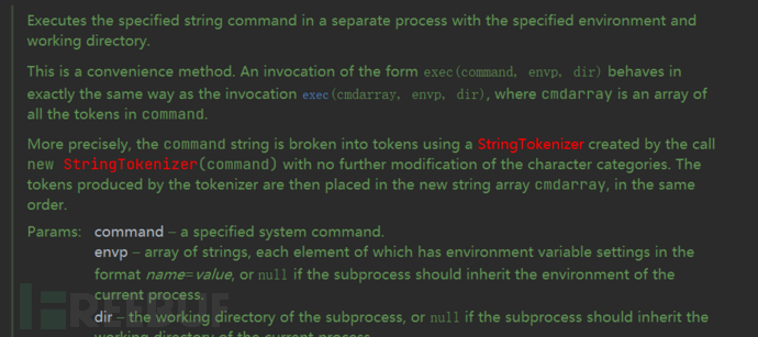 总结使用Runtime.getRuntime().exec()方法执行命令的时候,会将传入的字符串命令,根据\t\n\r\f等分隔符进行分割,之后在进行命令的执行。