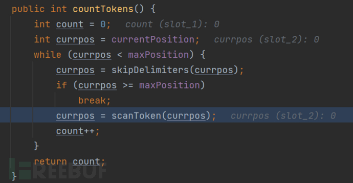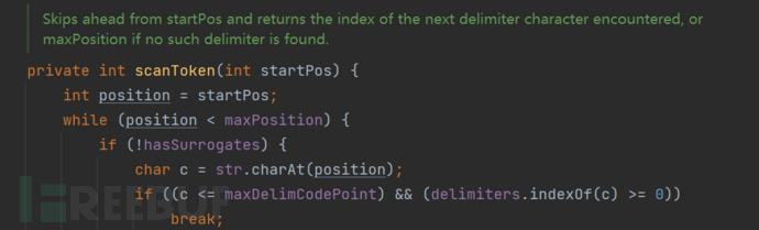 主要是利用skipDelimiters / scanToken这两个方法来进行切片操作的