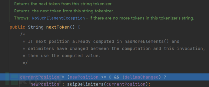 之后就是调用nextToken方法来为前面初始化的数组进行赋值操作