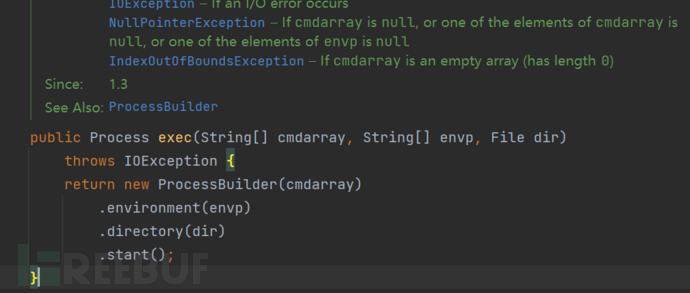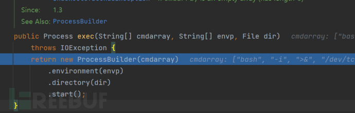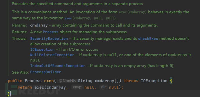 数组执行如果传入的参数是一个数组对象,来到的具体代码就是在public Process exec(String cmdarray[])方法的调用中。