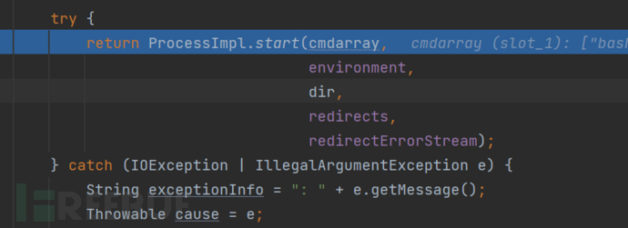 在这个方法中,直接就将该数组对象传入的ProcessBuilder的构造方法中,之后调用start方法进行执行。