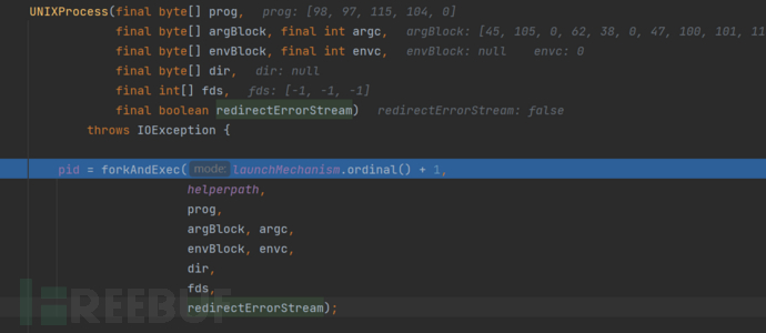 在这个类构造方法中,将会通过调用forkAndExec方法来创建了一个进程该方法返回了该进程的PID号。