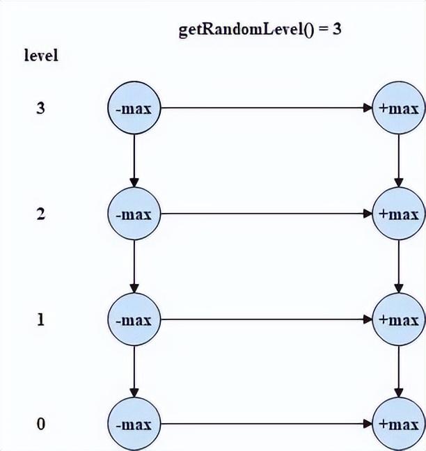 curLevel = getRandomLevel(); //指定了跳表的初始的随机层数后,就需要将每一层的头节点和尾节点创建出来并构建好关系