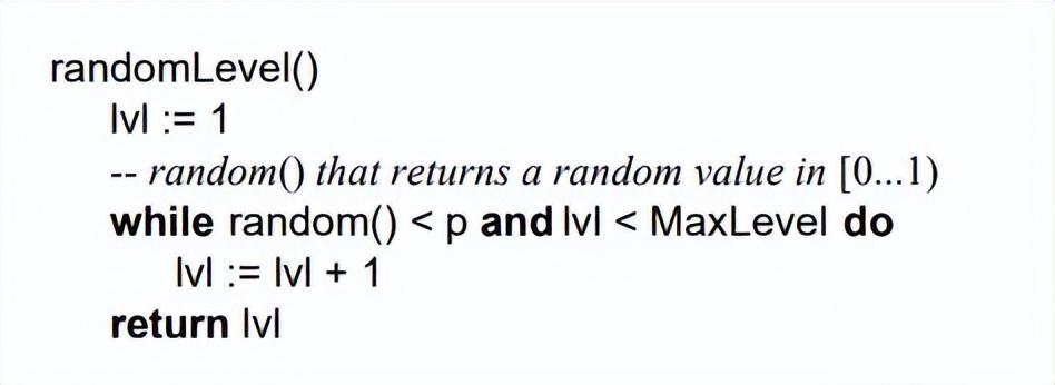 生成一个0~1的随机数r,若r<p,且lvl<MaxLevel ,则lvl ++;