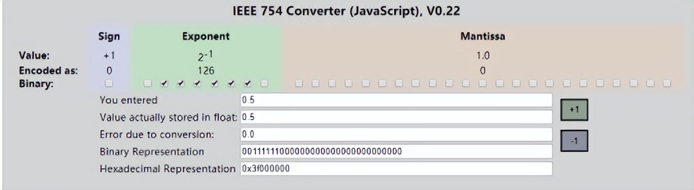 可以看到0.5的32bit转换16进制结果为0x3f000000,如果与0xFFFF做与运算结果还是0,不符合预期。