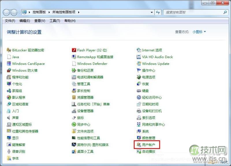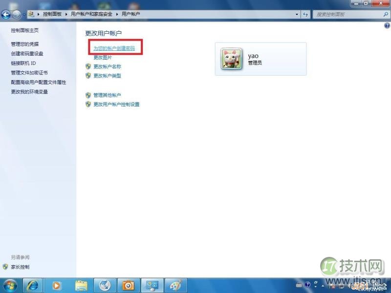 图三        4.进入”用户账户“选项后,面连点击”为您的账户创建密码“选项,进入下一步。如图四