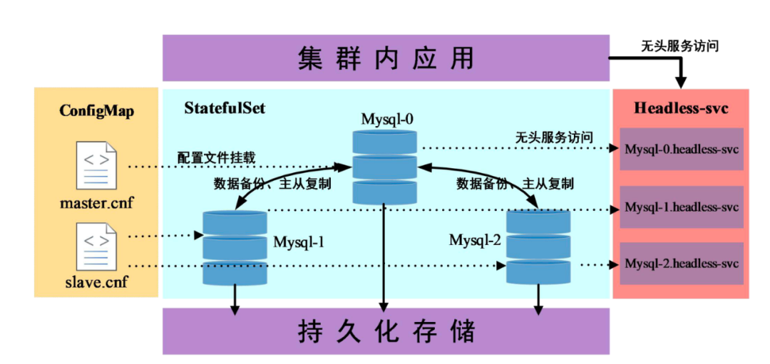 而对于EverDB集群内部节点之间的通信,需要实现一对一通信且不受PodIP 变化的影响。比如EverDB集群中的Mysql主从实例,在进行主从同步时,从实例(Slave)需要能直接访问主实例(Master)这一确切Pod,并不需要负载均衡,且在任何PodIP 发生变化时主从同步均不受影响,显然上述Service的定位并不适合这样的场景。
