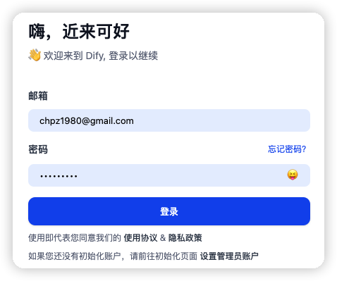 由于我们之前修改了入口的端口号, 这里需要通过 8085 端口访问 dify,如下: