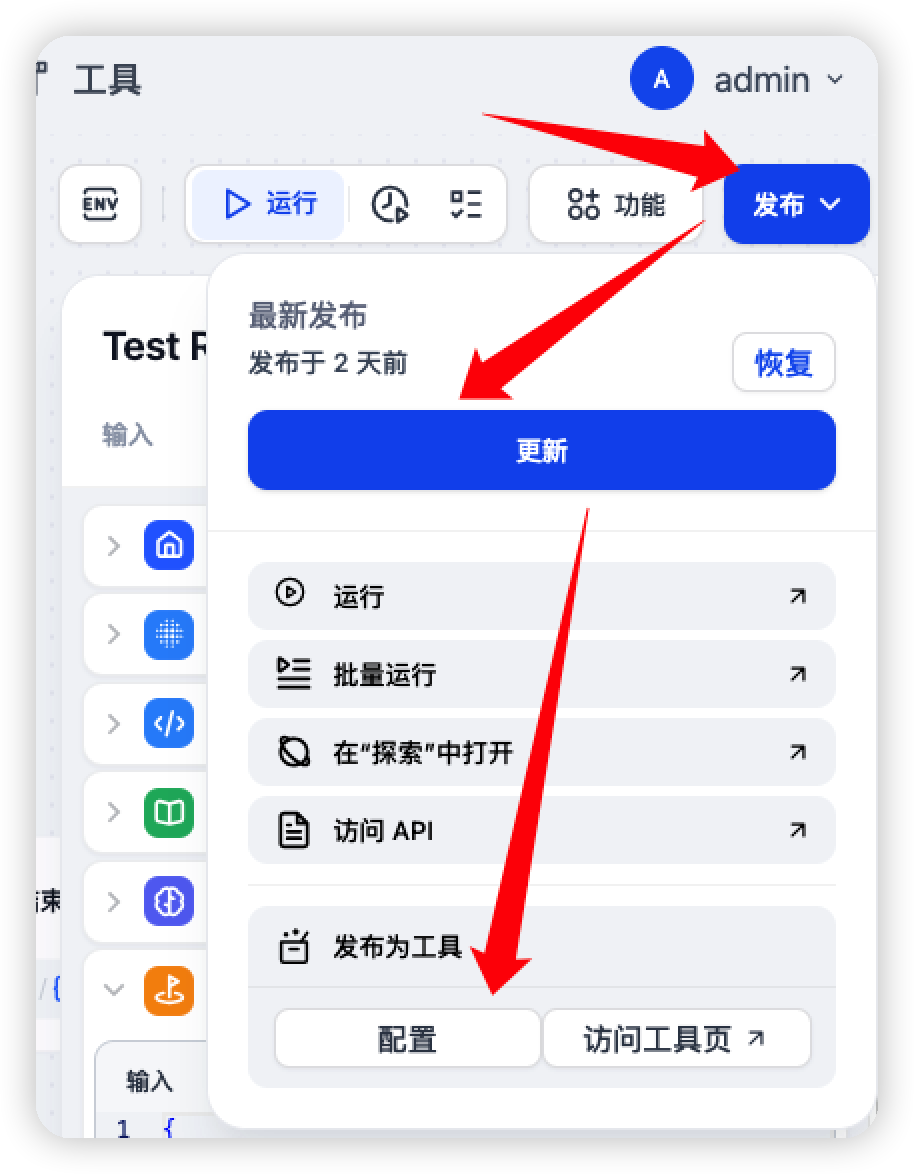 在接入 Agent 之前,需要发布工作流,并且“发布为工具”,如下图所示。