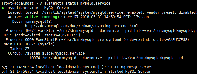 复制[root@localhost ~]# systemctl start mysqld.service1.通过以下命令查看MySQL运行状态;