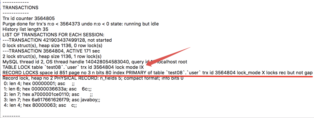 由于意向锁并不需要我们手动添加,那么有没有办法让我们看到意向锁呢?可以的。