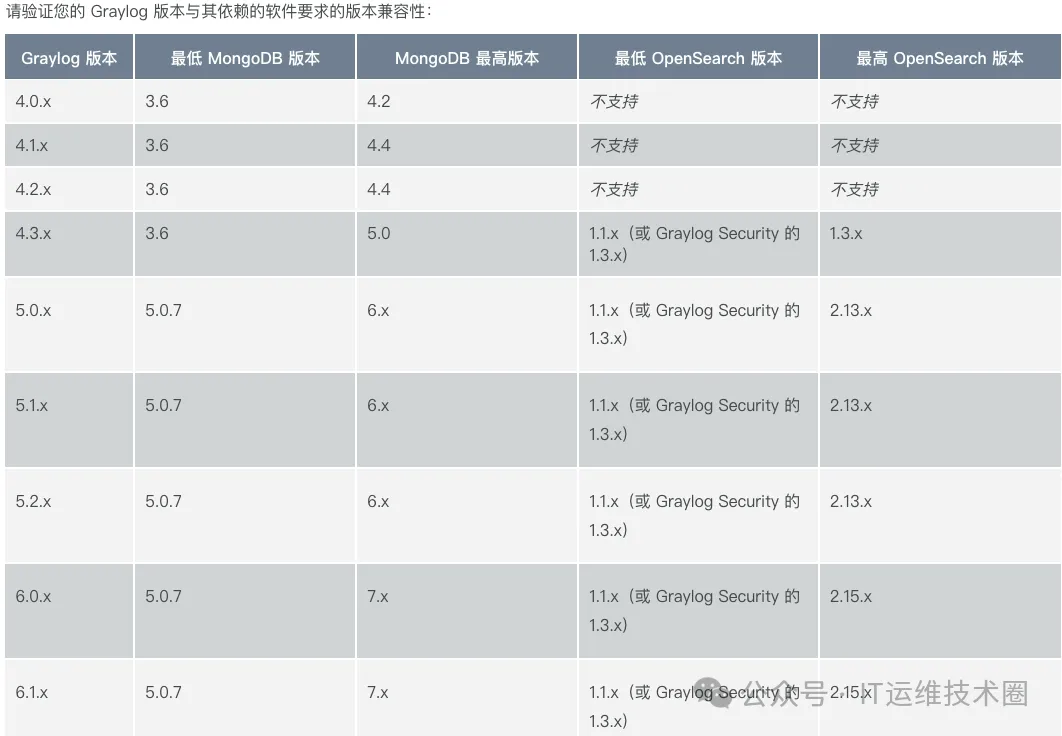 Java 运行时环境 (JRE):Graylog 是用 Java 编写的,需要 JRE 来运行。Elasticsearch:用于存储和索引日志数据,支持快速搜索和分析。MongoDB:用于存储 Graylog 的配置信息和元数据。兼容