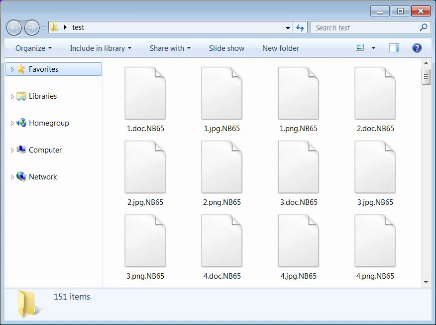 BleepingComputer给NB65的勒索软件做了一个测试,当加密文件时,它会在被加密文件的名称后加上.NB65的扩展名。
