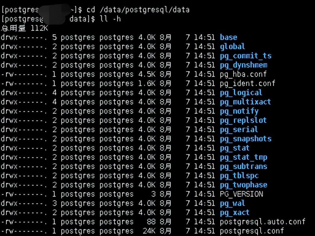 复制cd /data/postgresql/data