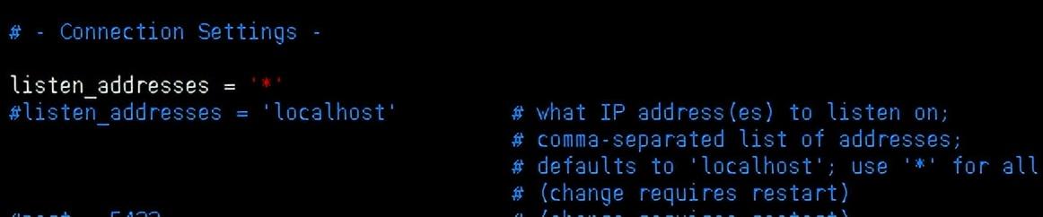 listen_addresses = *1.2.3.4.5.