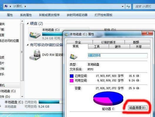 Win7电脑自带了一个系统工具“磁盘清理”,它可以帮助我们清理系统文件,包括下载的安装程序、临时文件以及错误报告等。通过使用磁盘清理工具,我们可以轻松地清理C盘中的这些文件,从而腾出更多的存储空间。