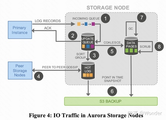 (1) 存储节点接收主实例的日志,追加到其内存队列。